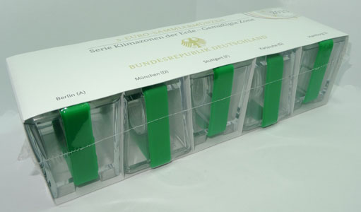 5 x 5 Euro Münzen verpackt in hochwertiger Verpackung. Sie erhalten alle 5 Prägebuchstaben ADFGJ