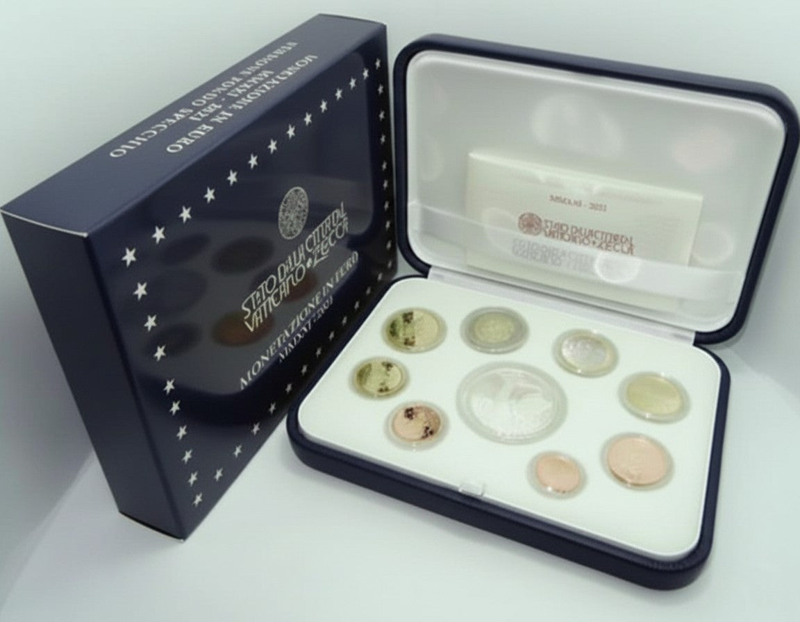 1 Cent - 2 Euro Vatikan Euromünzen + 20 Euro Silbermünze + edles Etui, Echtheitszertifikat